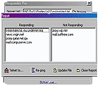 Responder Pro then shows a report listing servers that are active, and servers that ar inactive. From the report you can perform many useful functions such as re-checking a server, updating your server list (by removing servers that are inactive), telneting to a particular server etc.